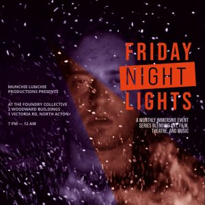 Friday Night Lights is a monthly immersive series of events carefully blending art, film, theatre, culture and music. It is designed to spotlight vital social themes through bold creative collaborations with local west London creatives, performers and artists.
