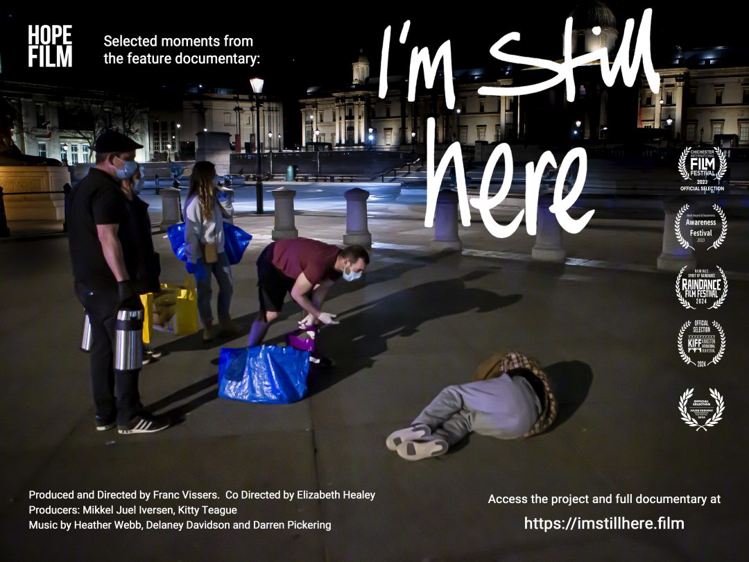 I’m Still Here is a feature documentary by Franc Vissers shot in London during the first 12 months of the Covid pandemic, where hundreds of people were left “locked out” on the streets.