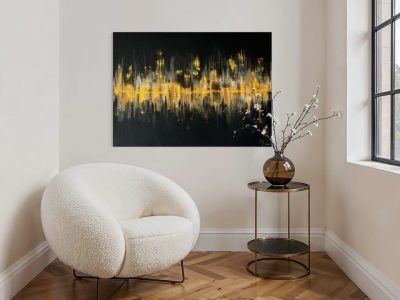 Anxious Radiance flickers with intensity, golden tones pulsing against deep undertones like nerves lit from within. The movement feels urgent, alive, as if the canvas itself is breathing fast; yet within the chaos lies a quiet strength, a glow that refuses to fade. It is a portrait of energy on the edge, where anxiety becomes light, and fragility transforms into power.